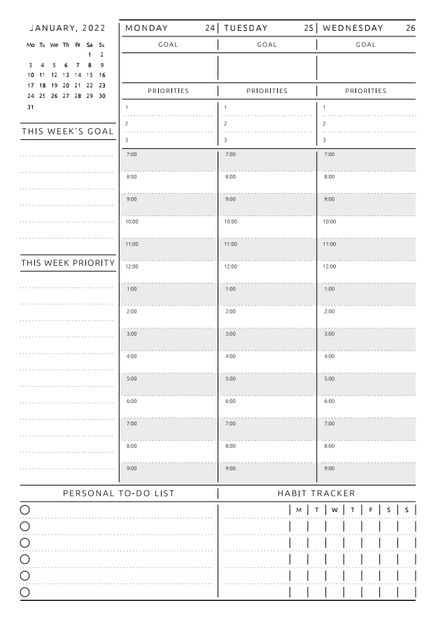 周计划员原创简约风格电子手帐,iPad、Goodnotes、notability、享做笔记、noteself 白色主题