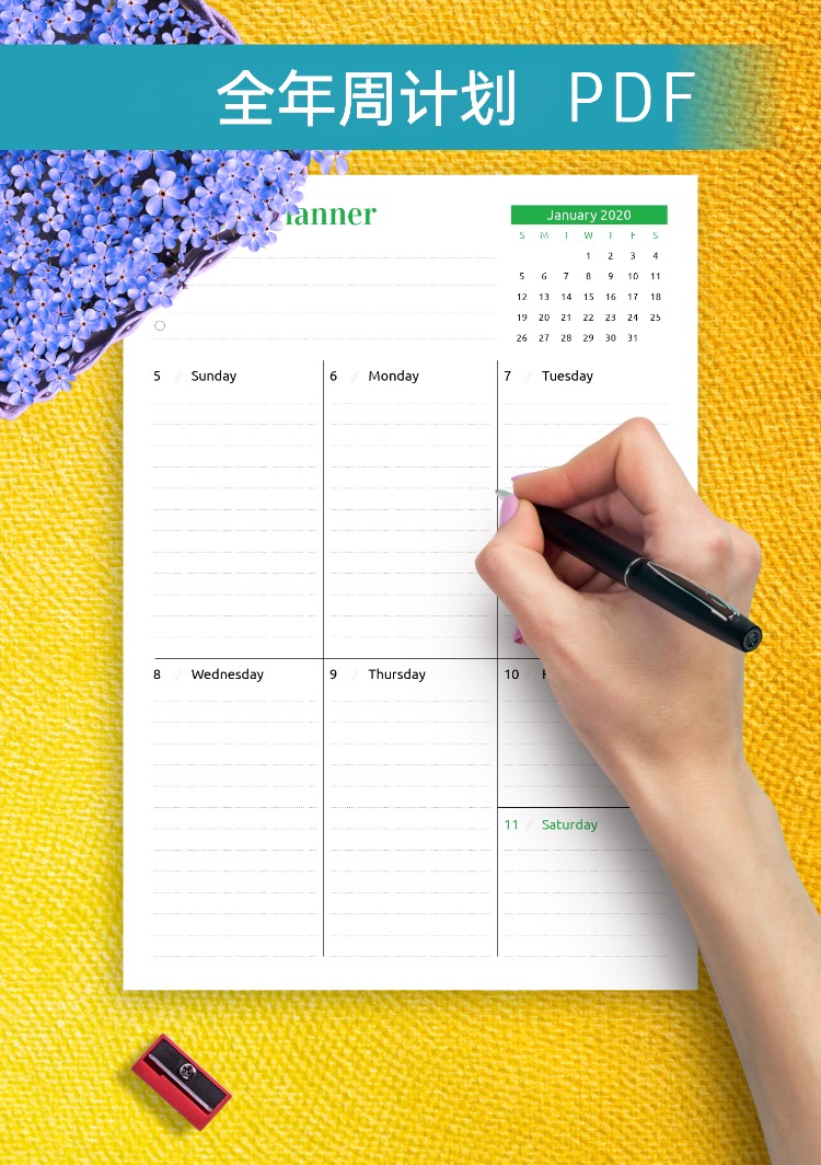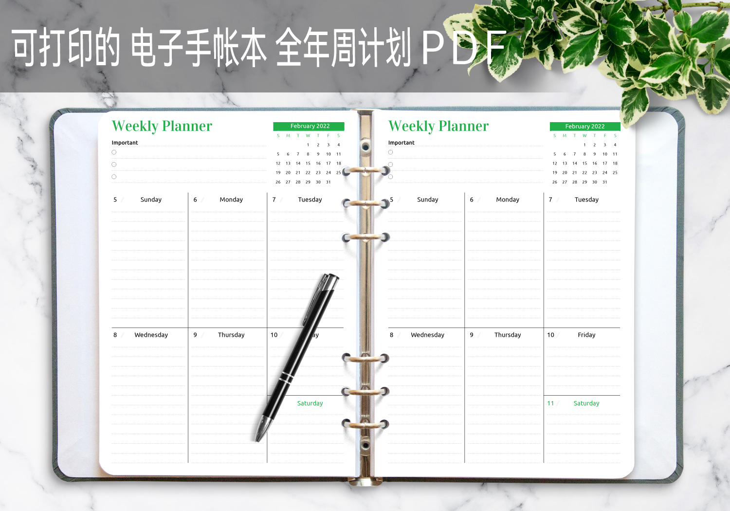 彩色一页一周一览计划模板,ipad,goodnotes,notability,matepad享做笔记电子手帐笔记本