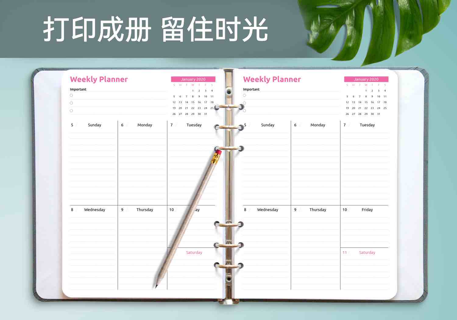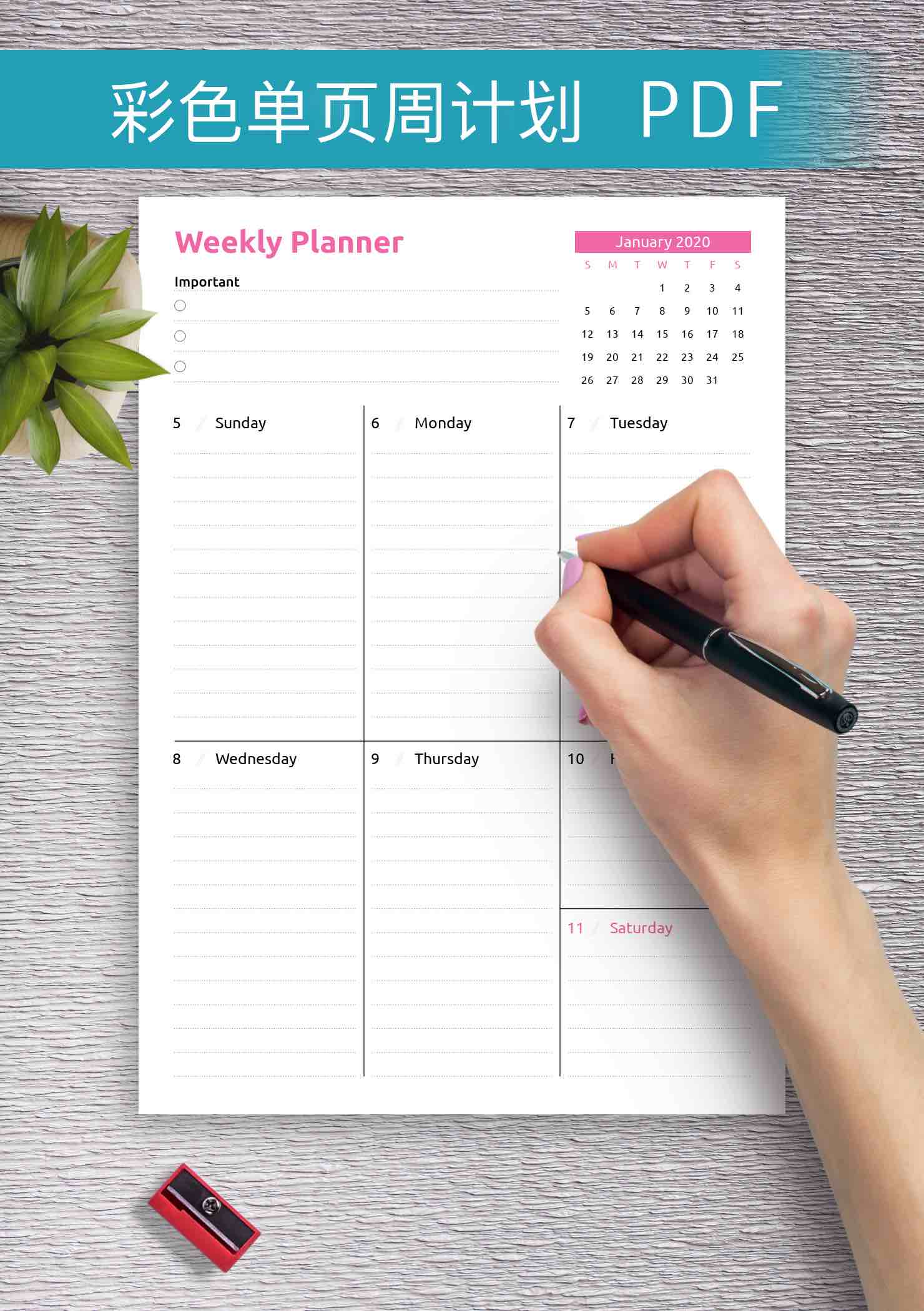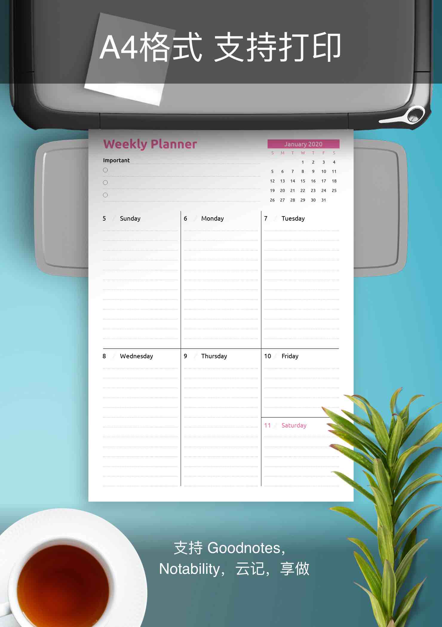 彩色单页周计划表,iPad、Goodnotes、notability、享做笔记、noteself 云记,电子手帐,2022全年周计划