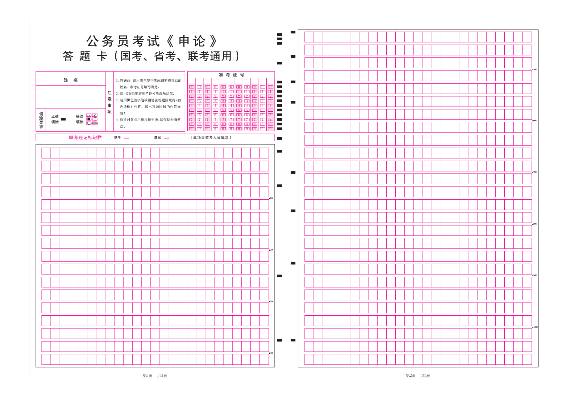 公务员考试 申论 答题卡 国考 省考 联考 通用 pdf
